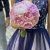 Buchetul de mireasă sau de nașă cu bujori roz este o alegere atunci când vrei să accesorizezi rochia cu ceva wow!