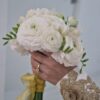 Buchetul conține 5 trandafiri albi 60 cm, 3 lalele VIP, 10 fire Viburnum și alte materiale. Folia și panglica sunt asortate în culorile florilor pentru o armonie de vis!